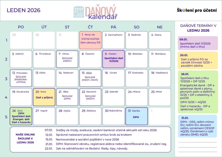 V roce 2026 nás (zejména účetní) čeká plno důležitých termínů. Pokud máte na starosti daňové povinnosti, tak pro Vás máme malý dárek.